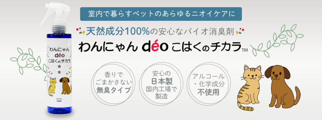 一般的な消臭剤とは違い、天然成分のため環境への影響もなく、ペットと暮らすご家庭にも安心してご使用いただけます。